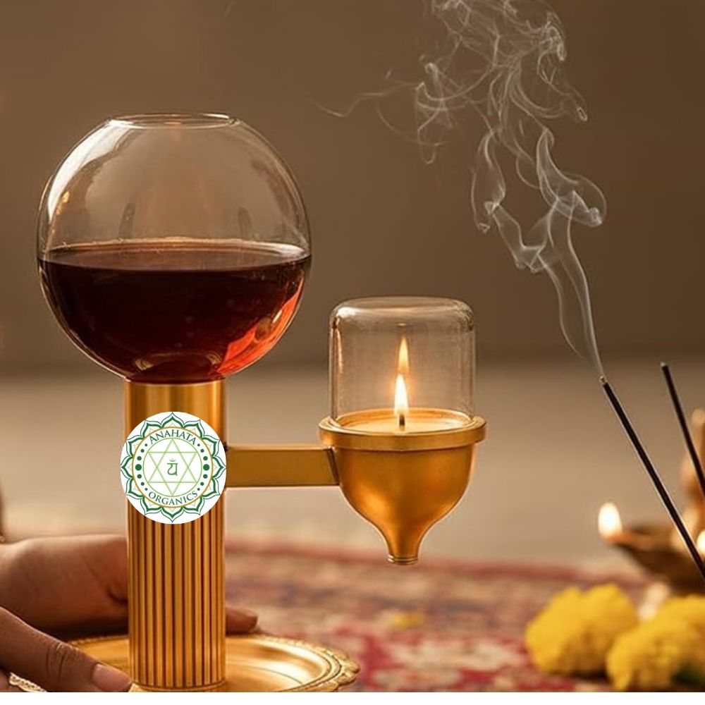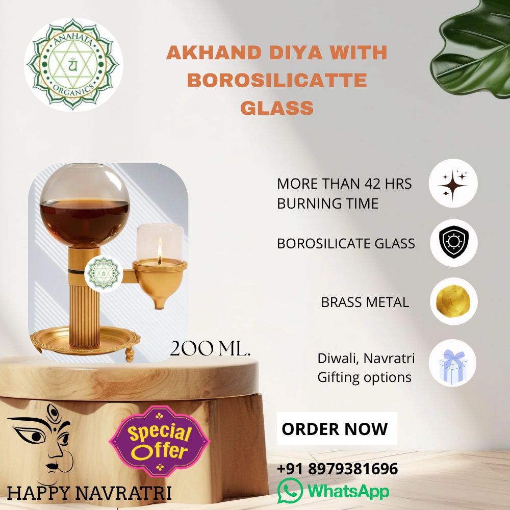 Anahata Organics Brass Akhand Jyot is a masterfully crafted brass oil lamp that merges timeless elegance with durability. Designed from premium-quality brass, it ensures a long-lasting presence in your home while radiating a warm, divine glow. The glass cover adds a refined touch, blending beauty with practicality, making it an ideal addition to your spiritual space. Whether used during daily pooja or special ceremonies, this Akhand Diya offers a serene and radiant ambiance for your rituals and prayers.